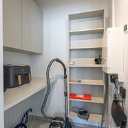 Aansluitend vind je een handige berging met o.a. airfryer, koffiemachine en extra opbergruimte.